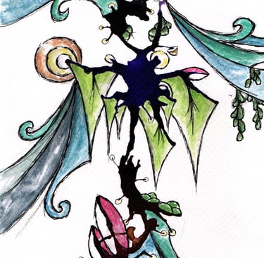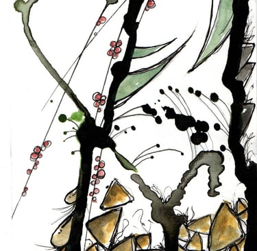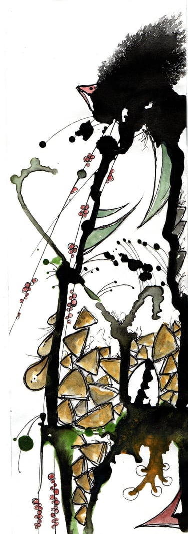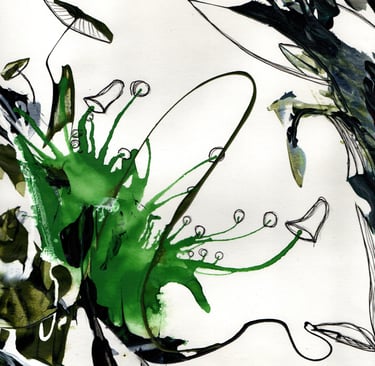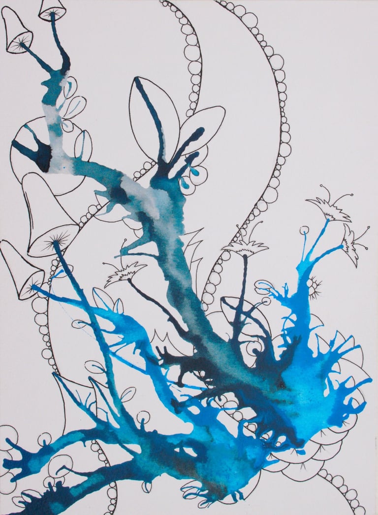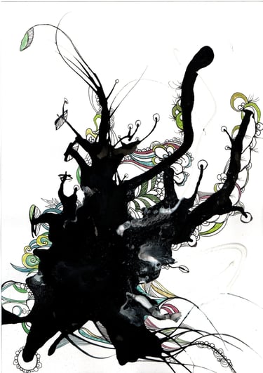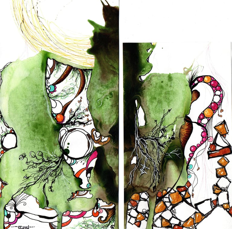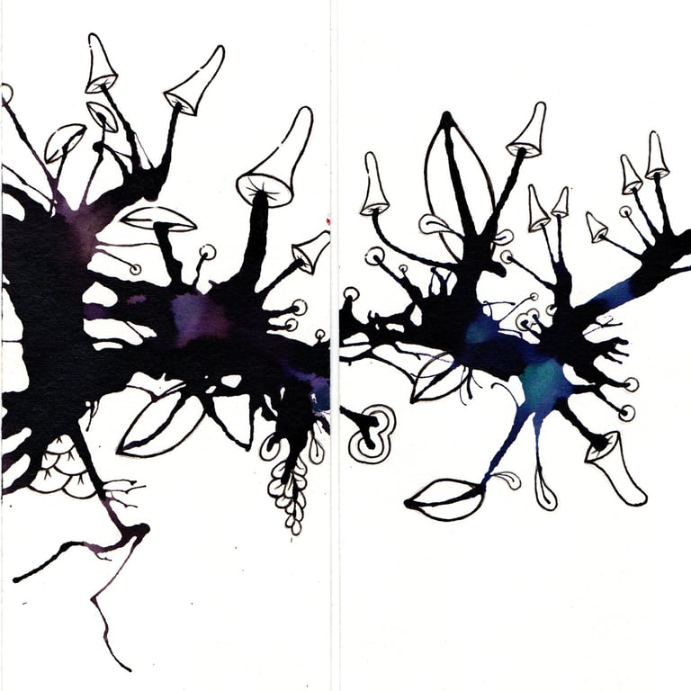 This was a few splodges of green and sepia ink which looked quite organic... what could they have growing on them or in them? Bright colours go well with muted dark colours. Leave plenty of areas white... don't know why, just looks better... Go crazy kids!! More uploads coming soon...